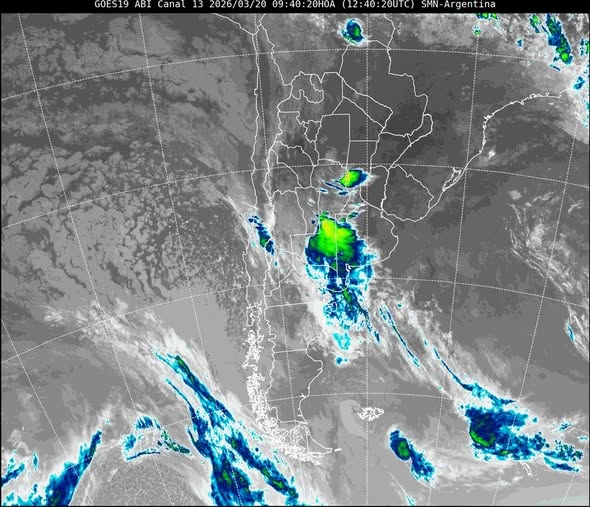 20 marzo 2026 -1020 h. Provincias de: centro y sur de Santa Fe (incluida Cañada de Gómez); Córdoba; Entre Ríos , San Luis, y aledaños. La región mencionada será afectada por tormentas y lluvias de variada intensidad.