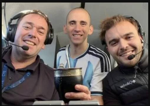 Mientras, subrepticiamente alguien subió al avión para que Gallo, que venía con una camiseta de la Selección con las tres estrellas en su pecho, con la que se había fotografiado, se cambiara y se pusiera el uniforme flamante de gendarme, con el que finalmente descendió de la aeronave.