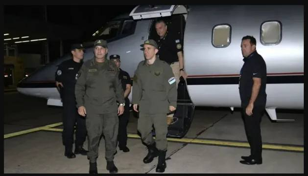 A las cuatro de la mañana, cuando el avión pisó suelo argentino, ya estaban en la pista la senadora Bullrich, la ministra Monteoliva, Claudio Brilloni, el Canciller Pablo Quirno, el gobernador Jalil -que vino en un avión particular junto a la madre de Gallo- y una larga custodia de Gendarmería formando un pasillo de honor mientras la banda de la fuerza daba un marco musical al recibimiento.