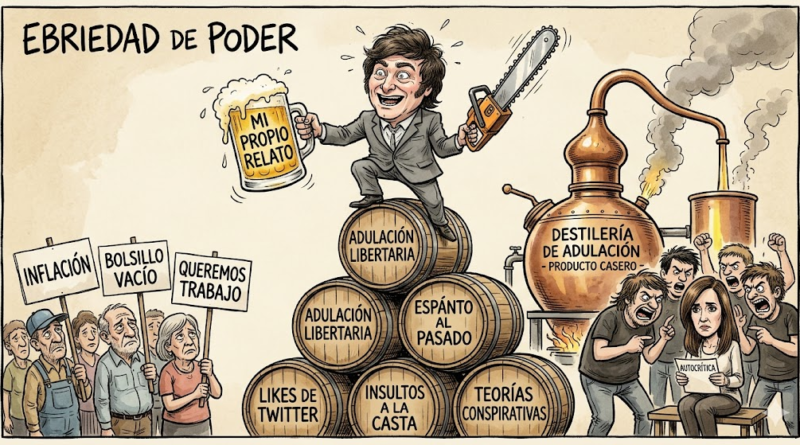 Hay una regla no escrita en el manual de cualquier alquimista responsable: “No consumas tu propio producto de alto octanaje”. Pero en la Casa Rosada, los protocolos de seguridad parecen haber sido derogados por DNU. Bajo la cúpula de Balcarce 50, se ha instalado una micro-destilería de alta pureza que elabora una de las drogas más adictivas del mundo: la adulación.